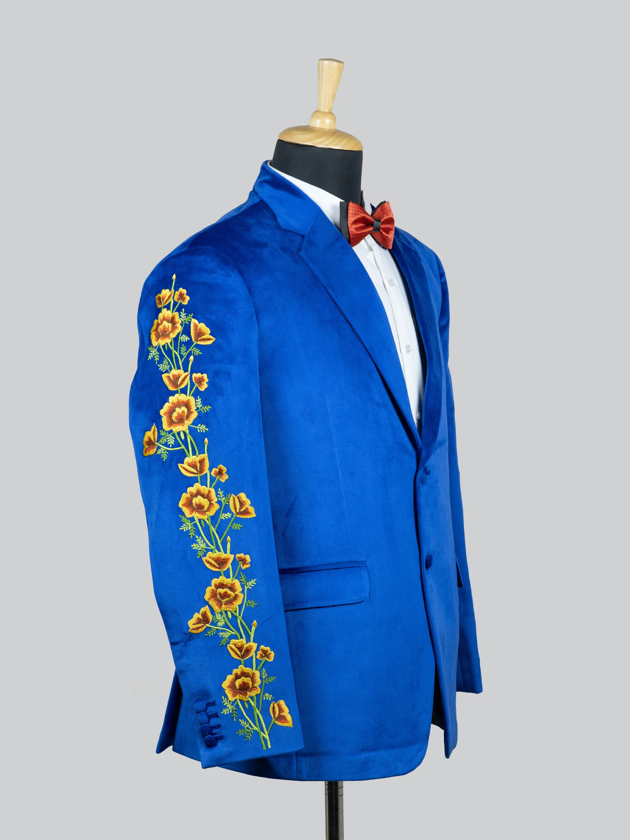 This Country Western Concert Outfit is made of sumptuous velvet and adorned with poppies and sunrise embroidery. With this attire, you can enjoy proms, concerts, and weddings and make a statement wherever you go. Our talented craftspeople have expertly customized this outfit. This features a single-breasted, notch-lapel button closure; flap pockets; long sleeves with flower embroidery; a blazer back with sunrise embroidery and rhinestone work; and slim-fit pants. Dress in a way that becomes fashionable.